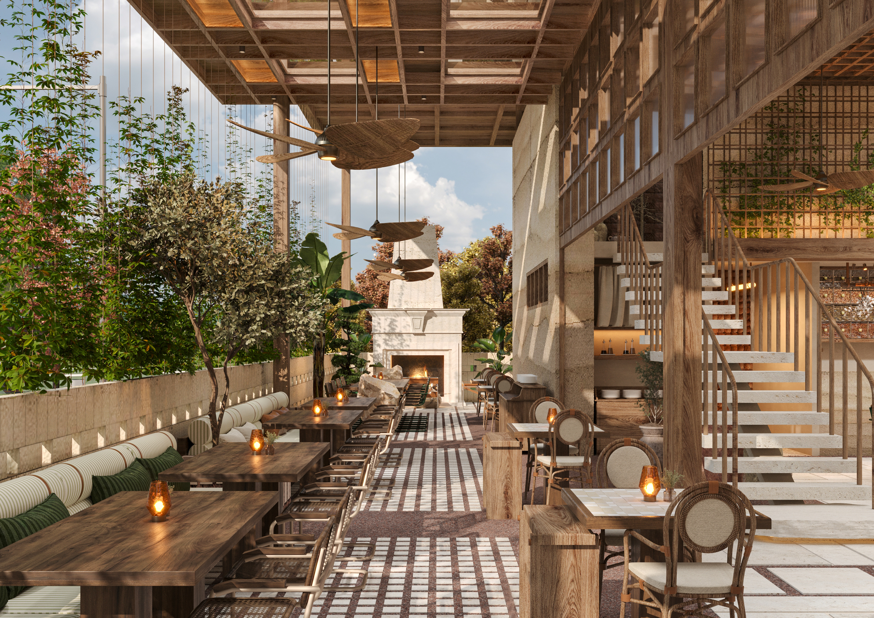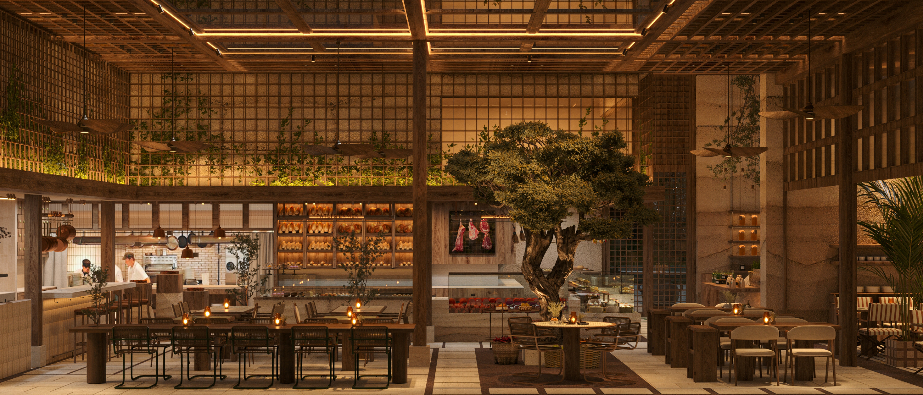 The design balances semi-open and enclosed spaces, allowing nature, materiality, and craft to shape the experience. Local materials, layered lighting, and exposed preparation areas invite guests to connect with the space through both architecture and process, offering a serene yet vibrant setting rooted in authenticity.